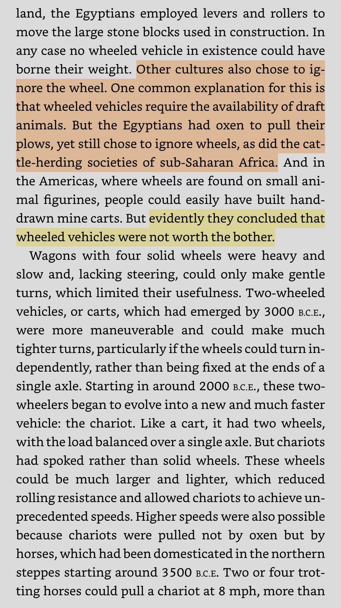 I was reminded of so much in this Tom Standage book, including this paragraph, on the literally thousands of years between someone ‘inventing’ the wheel, people mostly not knowing how to use it, and more widespread uptake:
