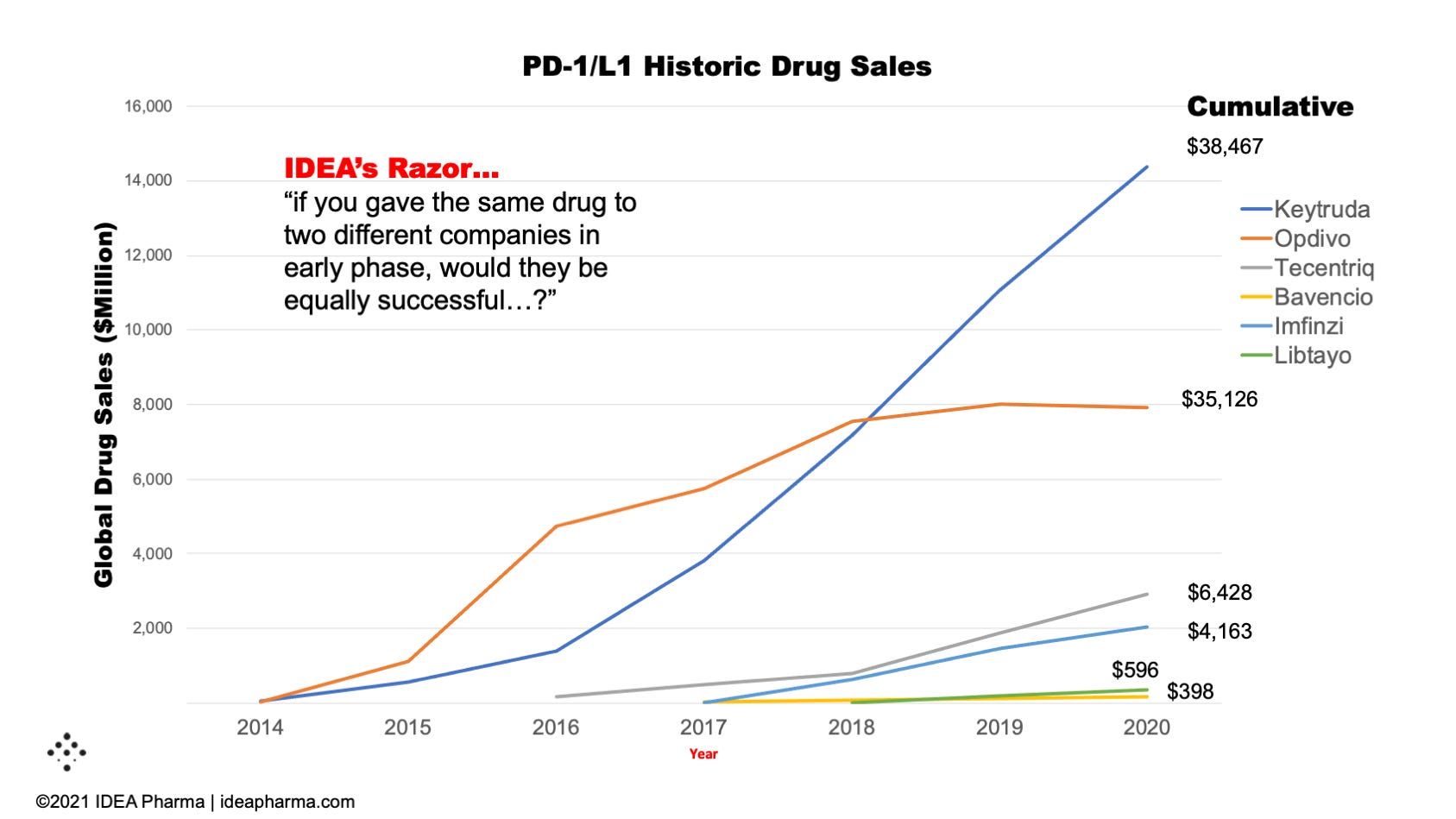 The IDEA 'razor' has served us well, a simple question that both illustrates a mindset and illuminates our methods: if you gave the same drug to two different companies at the start of phase I, would they be equally successful?